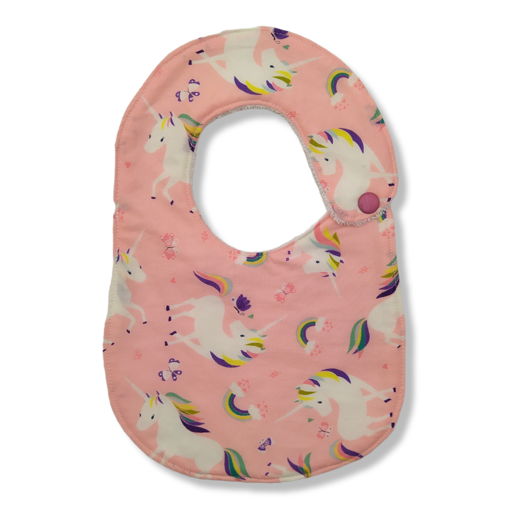 Bavaglino per bambino da 0 a 18 mesi, realizzato in tessuto americano stampato 100% cotone e spugna bianca 100% cotone. La composizione di cotone e spugna rende il bavaglino estremamente assorbente, perfetto per i lattanti, sarà molto utile in fase di svezzamento e di alimentazione autonoma; si lava facilmente in lavatrice. Chiusura con bottone a pressione. Dimensioni: altezza 30 cm, larghezza 21 cm, diametro collo 29 cm.