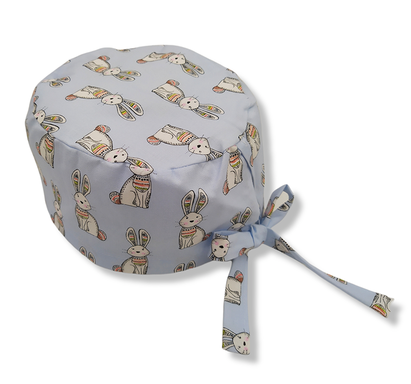 Cuffietta da medico/infermiere/dentista/OSS/ecc. realizzata in tessuto 100% cotone; grazie ai lacci è possibile adattare la cuffietta alle caratteristiche delle diverse teste.