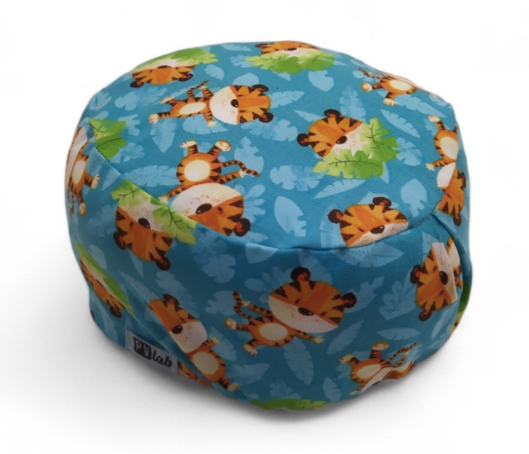 Cuffietta da medico/infermiere/dentista/OSS/ecc. realizzata in tessuto 100% cotone; ha un soffietto creato al centro dietro per dare spazio ai capelli ed un elastico posizionato sempre al centro dietro di circa 21 cm di lunghezza.