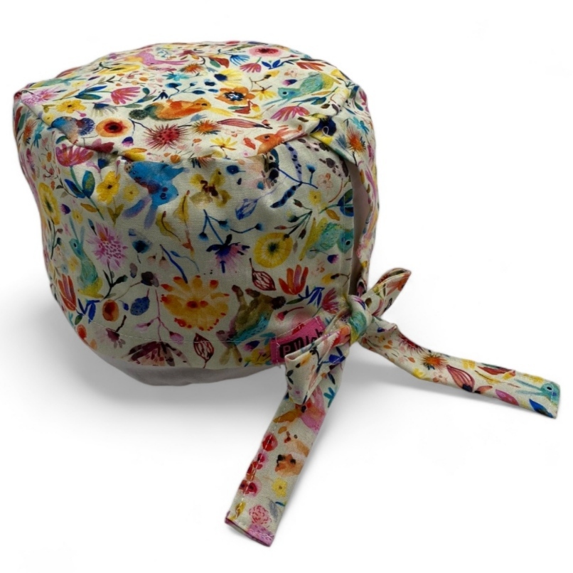 Cuffietta da medico/infermiere/dentista/OSS/ecc. realizzata in tessuto 100% cotone; grazie ai lacci è possibile adattare la cuffietta alle caratteristiche delle diverse teste.