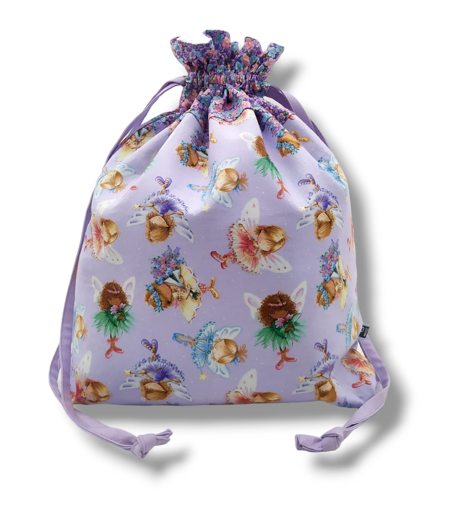 Sacchetto in tessuto americano stampato 100% cotone, foderato, dotato di due doppi lacci con cui si può stringerlo, chiuderlo e appenderlo. Utile per riporre nella borsa passeggino i cambi, potrà essere utilizzato all’asilo o nelle attività sportive. Dimensioni: altezza 37 cm, larghezza 33 cm, profondità 8 cm.